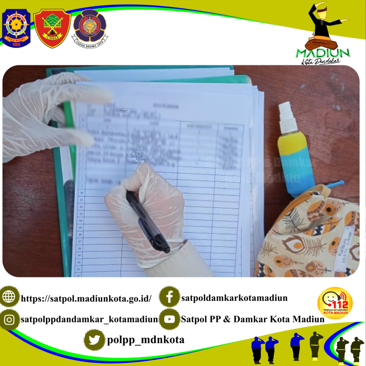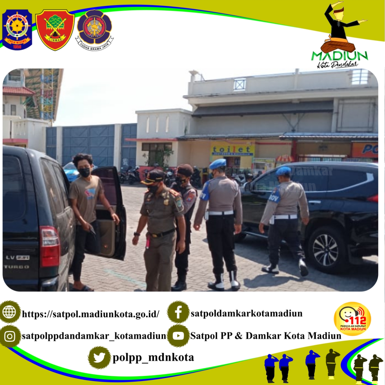 Kegiatan hari Selasa 31 Agustus 2021 pukul 09.40 WIB Personel Satuan Polisi Pamong Praja dan Pemadam Kebakaran Kota Madiun telah melakukan kegiatan rutin operasi yustisi penegakan protokol kesehatan berlokasi patung pendekar tepatnya jalan Diponegoro bersama TNI, POLRI, dan DISHUB.